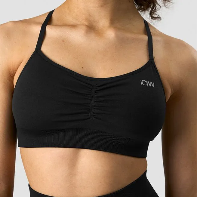 Sports-BH uden sømme med scrunch-detalje. Fremstillet i et behageligt sømløst materiale med fire-vejs stretch, perfekt til træningscenteret. Flatterende scrunch-detalje foran og justerbare stropper for en perfekt pasform.