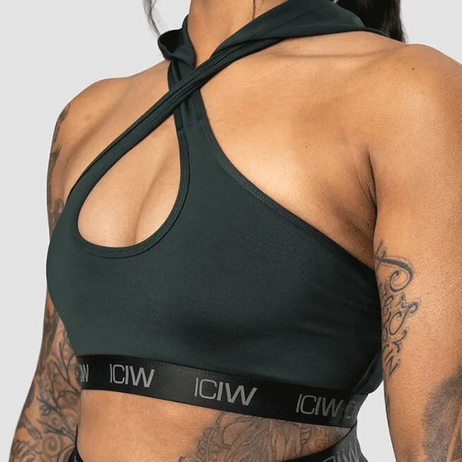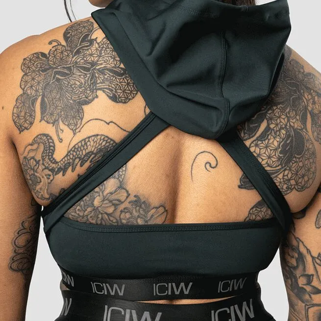 Sportsbh med medium støtte og en hætte. Ultimate Training Hoodie Sports Bra er en sportsbh med attitude. Den har et krydsdesign foran og en bryderryg for en perfekt pasform. Båndet med ICIW-logo og hætten giver bh’en et unikt look.